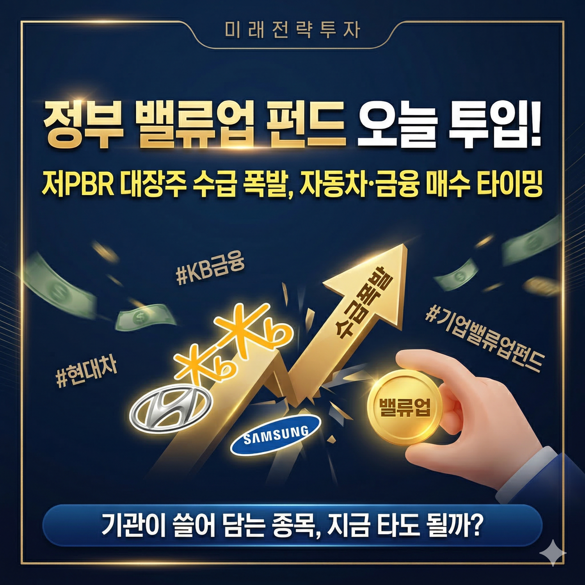 1. 밸류업 펀드, 왜 지금 투입되는가? 정부는 코리아 디스카운트(한국 증시 저평가)를 해결하기 위해 기업 스스로 주가 가치를 높이도록 유도하고 있습니다. 특히 3월 주주총회 시즌은 기업들이 배당 확대, 자사주 소각 등 주주 친화 정책을 공표하는 시기입니다. 펀드 자금 투입은 이러한 기업들에게 강력한 수급 뒷받침이 되어 주가 하단을 견고하게 지지하는 역할을 합니다. (출처: 금융위원회 보도자료, 2026.02)