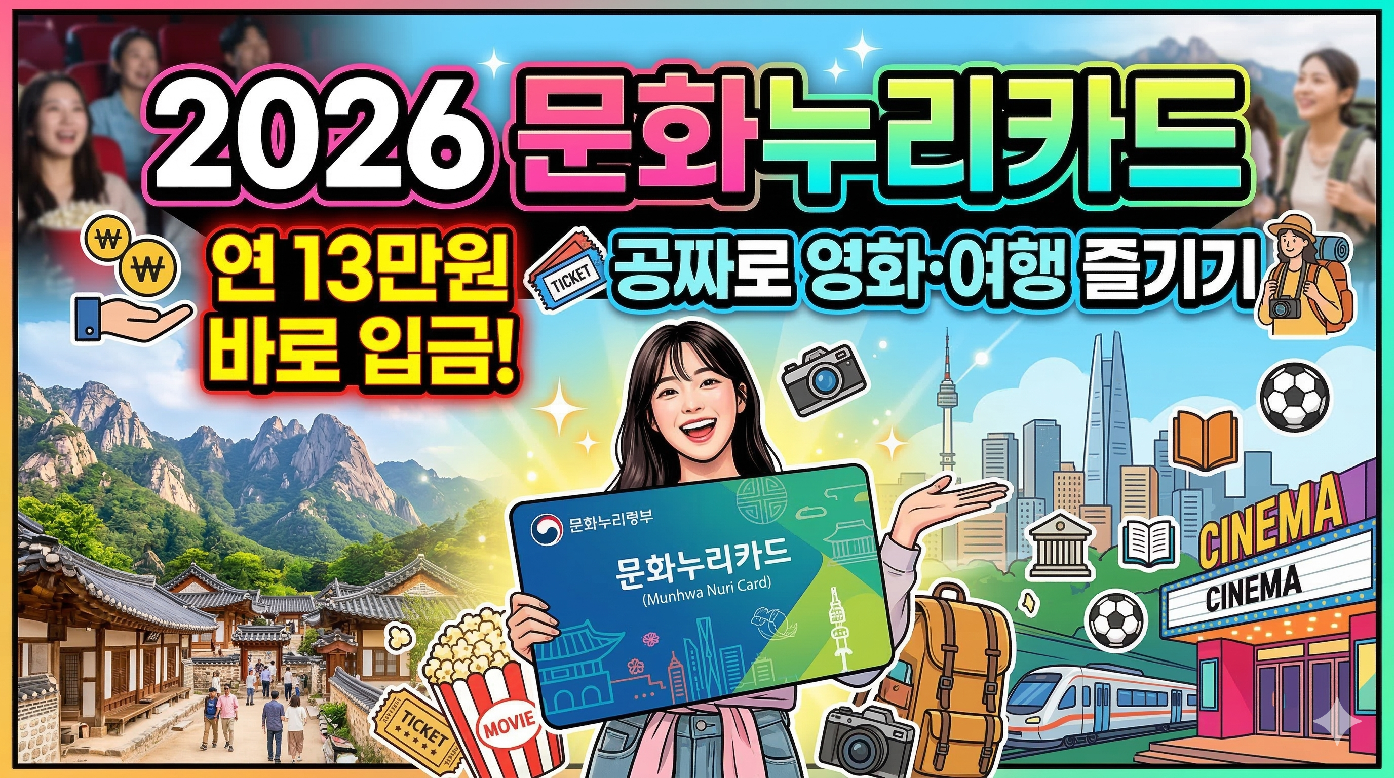문화생활 즐기기엔 물가가 너무 비싸 고민이신가요? 정부에서는 소외계층의 문화 격차 해소를 위해 매년 **'문화누리카드'**를 통해 공연, 영화, 여행, 스포츠 관람 등을 지원합니다. 2026년 기준, 지원 금액이 상향되었으니 자격 요건을 확인하고 지금 바로 신청하세요! (출처: 문화체육관광부, 2026)
