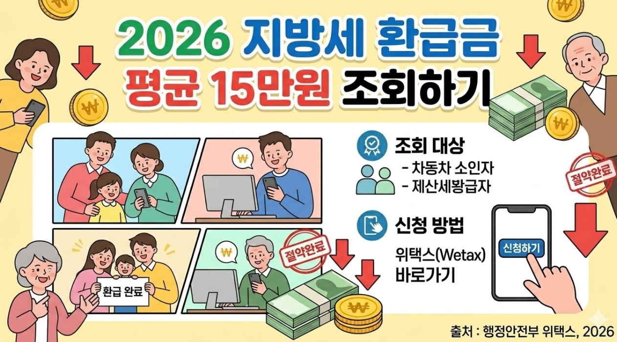 물가 상승으로 지출이 늘어나는 요즘, 본인도 모르게 잠자고 있는 돈이 있다는 사실을 알고 계신가요? 행정안전부 발표에 따르면 주인에게 돌아가지 못한 지방세 환급금이 매년 수천억 원에 달한다고 합니다. 특히 자동차세를 연납했거나 소득세 환급을 받으신 분들이라면 반드시 확인해야 합니다. 오늘은 2026년 기준, 스마트폰 하나로 지방세 환급금 조회를 완료하고 즉시 입금받는 신청 방법을 완벽 정리해 드립니다. (출처: 행정안전부 위택스, 2026)