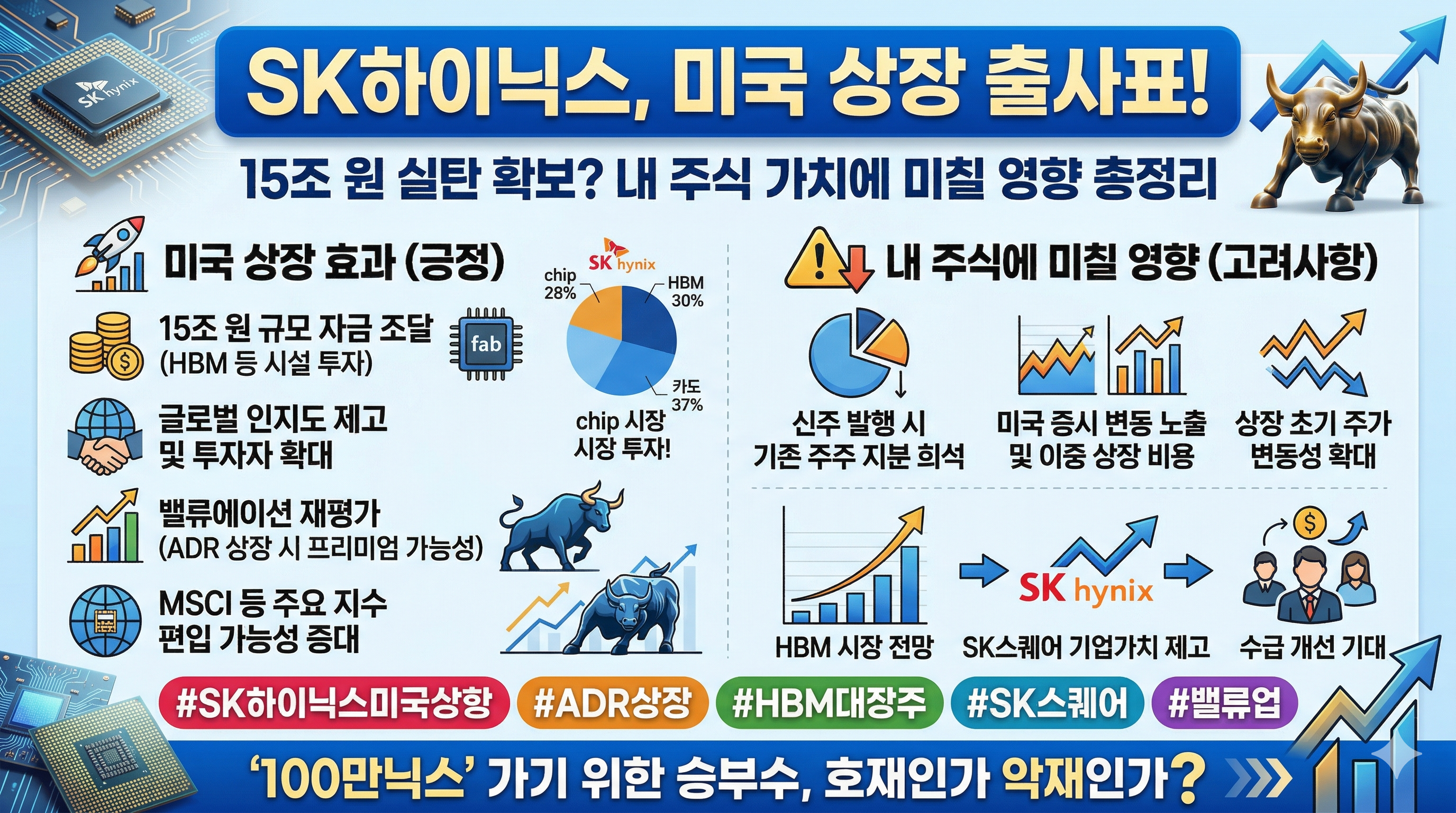 SK하이닉스의 미국 상장은 단순한 자금 조달을 넘어, 한국 기업이 글로벌 AI 생태계의 중심에 서겠다는 선언과 같습니다. 단기적인 주가 흔들림에 일희일비하기보다, 기업의 펀더멘털이 글로벌 시장에서 어떻게 재평가되는지 긴 호흡으로 지켜볼 때입니다. (출처: 한국반도체산업협회 2026 정책 리포트)