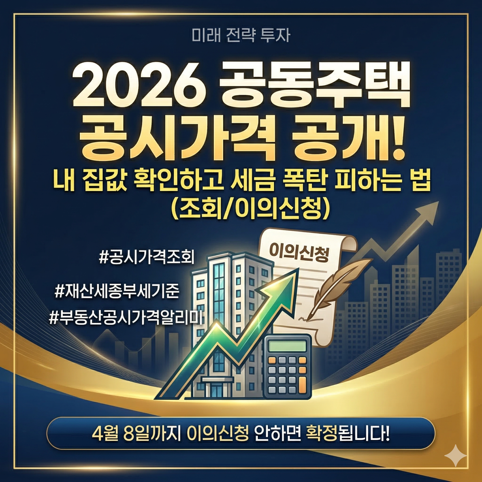 국토교통부에서 발표한 2026년 공동주택 공시가격이 전격 공개되었습니다. 공시가격은 내가 내야 할 재산세와 종합부동산세의 기준이 될 뿐만 아니라, 지역가입자의 건강보험료 산정에도 직접적인 영향을 미치는 아주 중요한 지표입니다. (출처: 국토교통부 부동산공시가격알리미 공고, 2026.03)